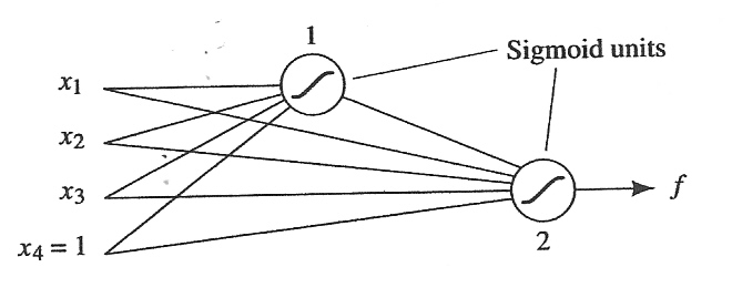 Sigmoid unit number 2 has as its inputs the output of sigmoid unit 1
